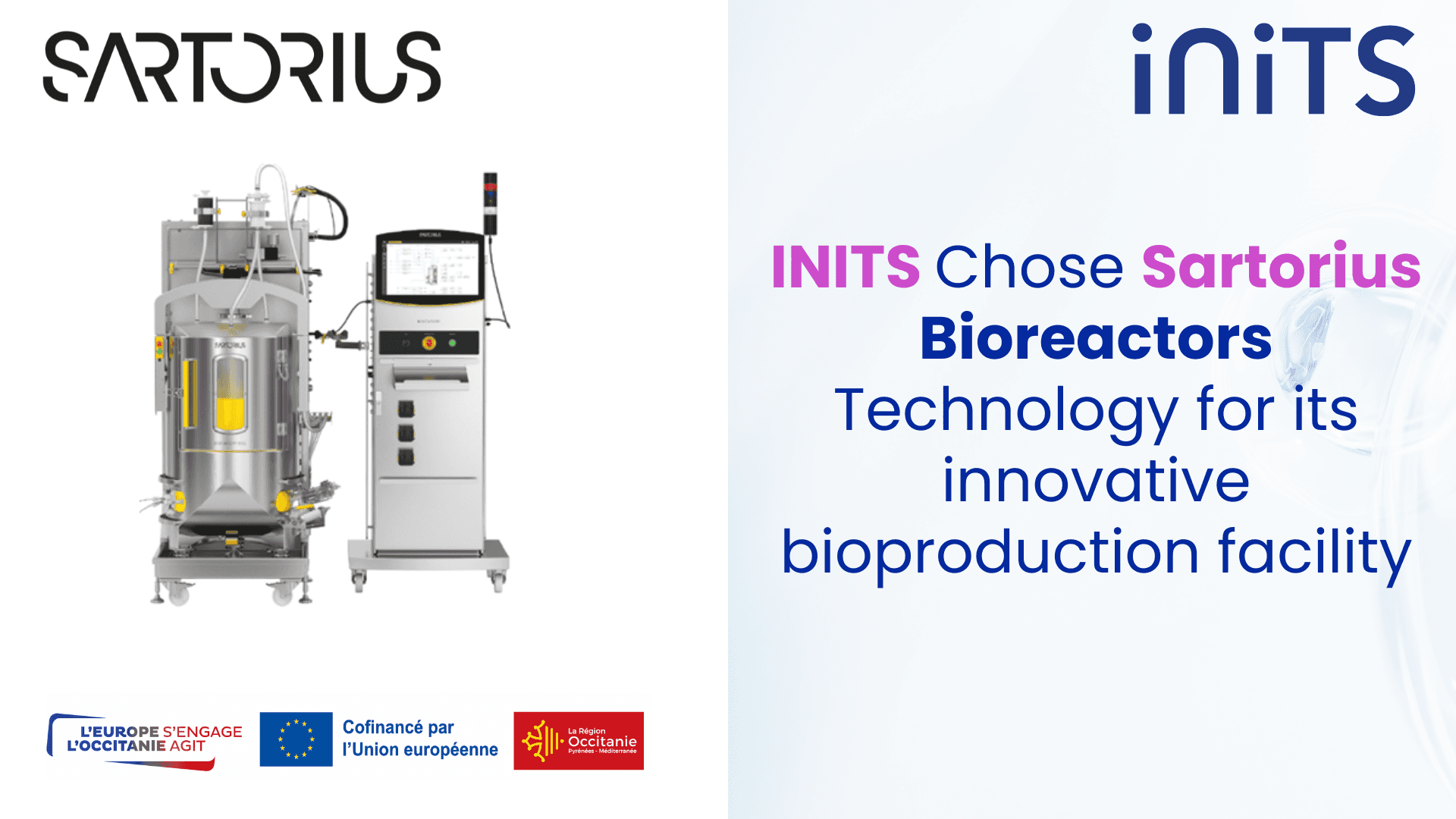 Montpellier, France, February 2026 - INITS, an innovative French biopharmaceutical service company, is pleased to announce a collaboration with Sartorius, a global leader in bioprocessing solutions. Through this partnership, INITS will equip its upcoming bioproduction facility in Mauguio with a continuity of Sartorius bioreactors — from small-scale development systems to large-scale single-use stirred-tank reactors.